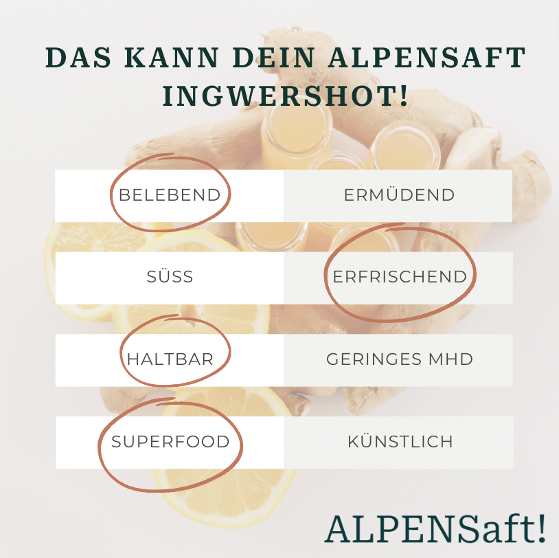 Unsere Shots sind nicht wie andere Smoothies oder gar Energy-Drinks. Mit 100% natürlichen Inhaltsstoffen liefern Sie alles, was Dein Immunsystem braucht, um mehr Leistung im Alltag zu bringen oder Dich einfach besser zu fühlen!